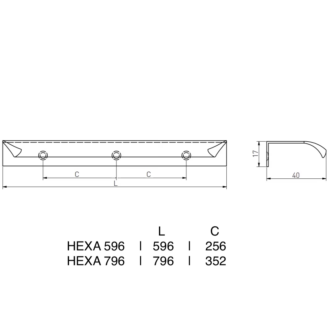 HEXA е колекция от дръжки за кант, предназначени за модерен интериор. Заоблените ръбове правят дръжката изключително декоративно допълнение към всяка мебел. Простата форма хармонизира перфектно с фронта, като ефективно подчертава линиите на мебелите. Фино оформени ръбове допълнително гарантират изключителна безопасност.