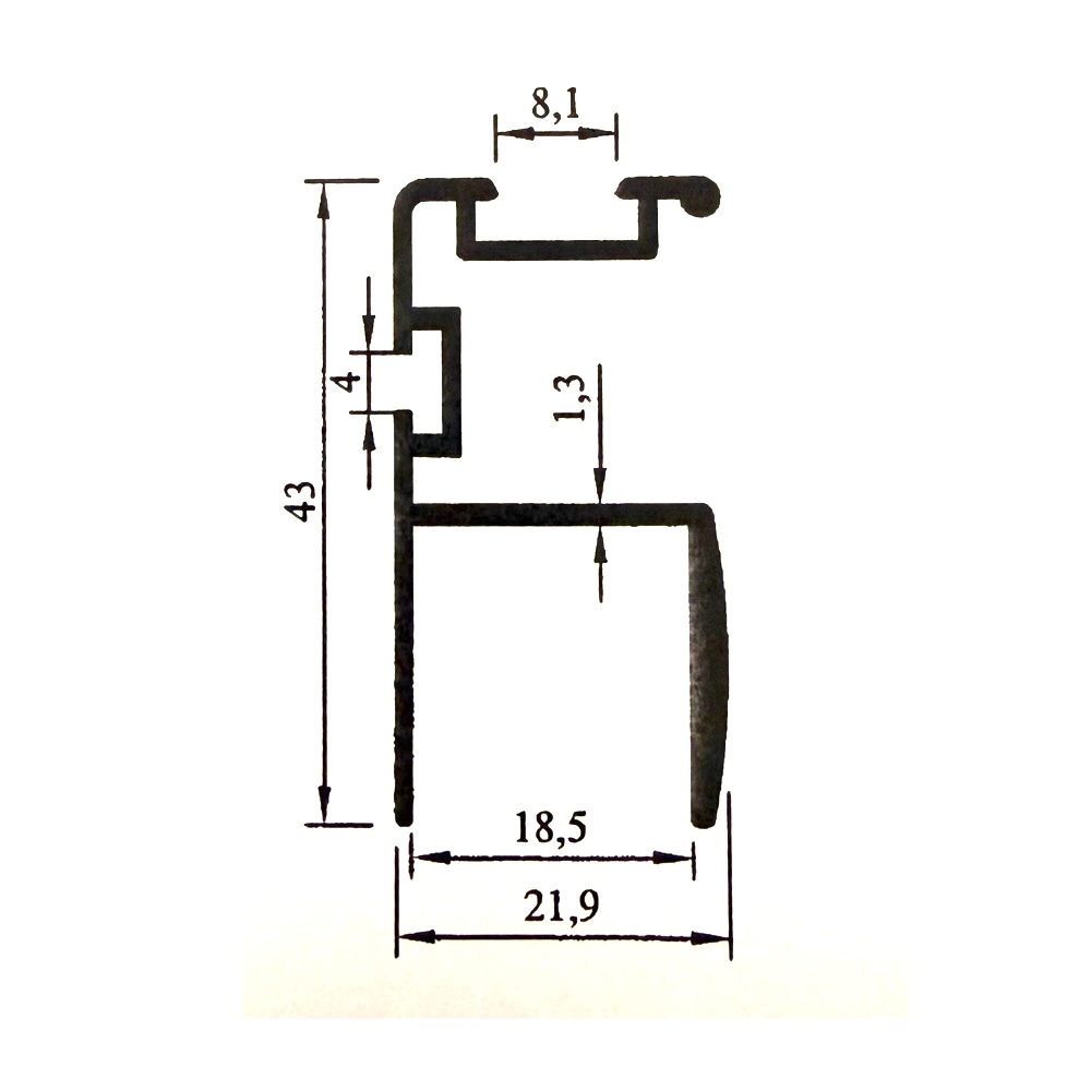 Кант дръжка за гардероби с плъзгащи врати. Профила има гума и четка. Гумата играе роля на стопер, а четката предпазва от проникван на прах.