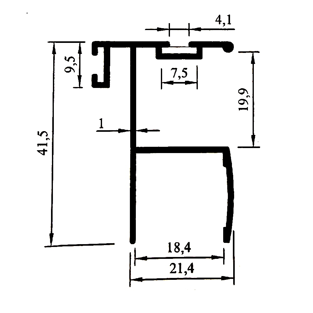 П профил за кант. За 18 мм плоскост. Размер 270 см. Материал – алуминий. Цветове: Алуминий , ИНОКС или Черно мат -прахово боядисано (RAL 9005) .