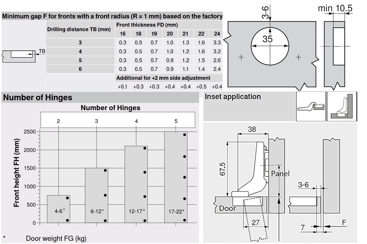 Панта BLUM CLIP – възможности за регулиране, характеристики: