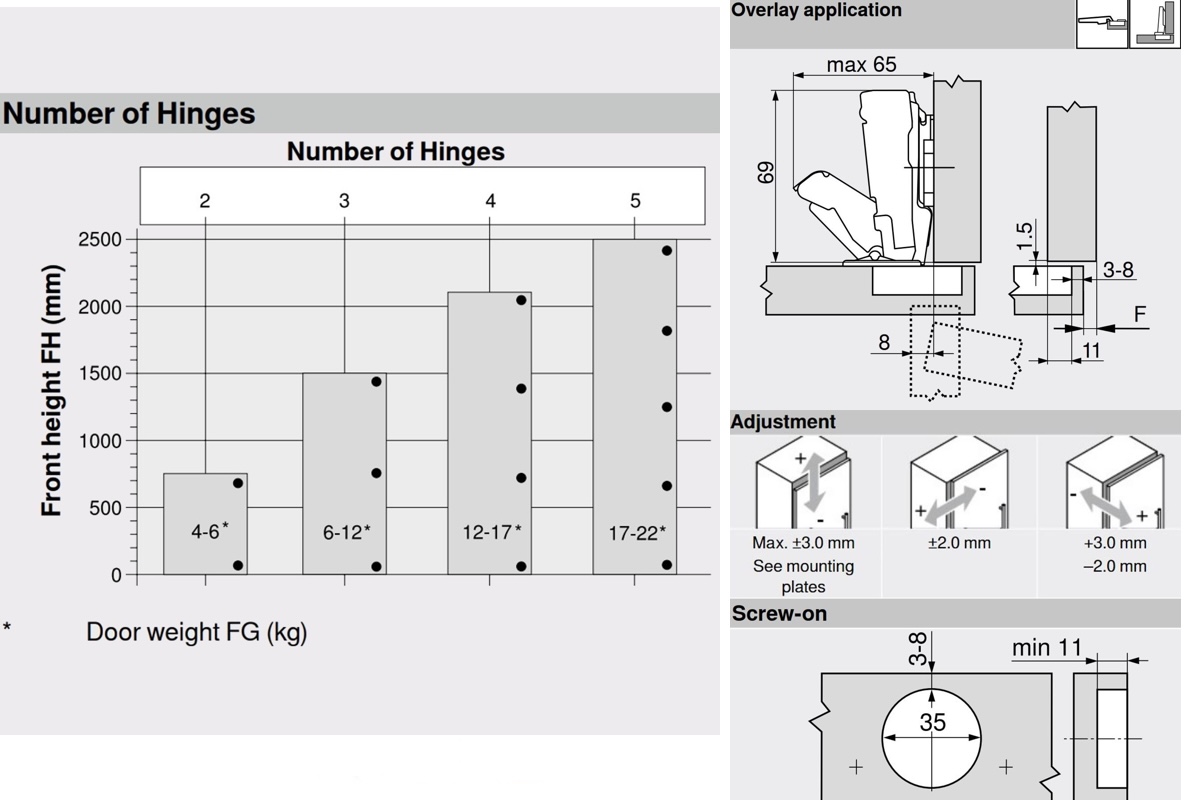 Регулиране в посока нагоре-надолу се извършва с освобождаване на подложката от страницата и позициониране на вратата в рамките на ±3мм (за подложка директен монтаж) и ±2мм (за подложка с дюбел);